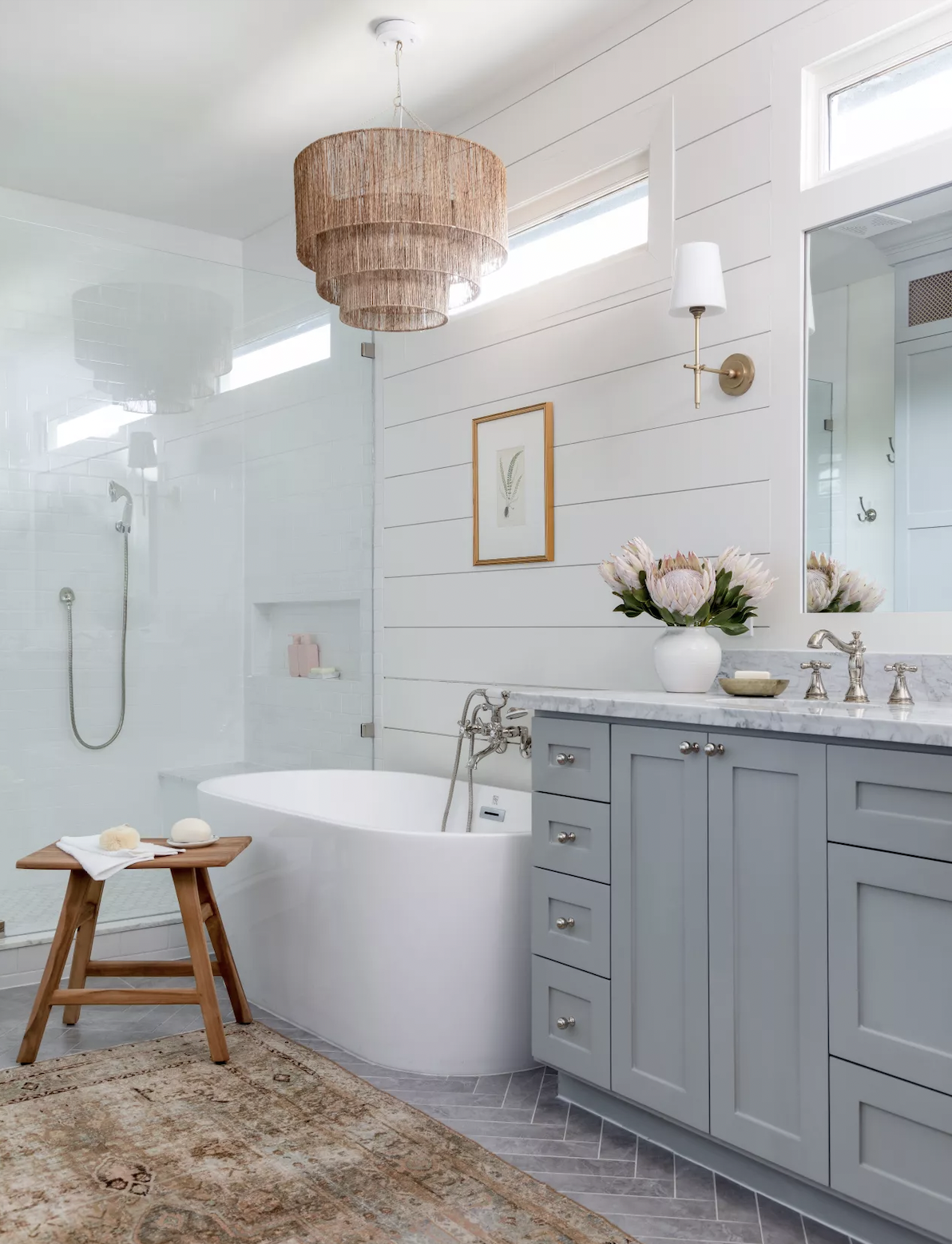 As stated in House Beautiful, we made “other swaps, like replacing exposed hinges with unlacquered brass ones and adding Carrera marble countertops, to invoke the old-world soul the clients were used to after living in their previous 100-year-old home. Katie said it best: “Everything you touch in there will age well. It feels like it's all been part of the house since the beginning.”