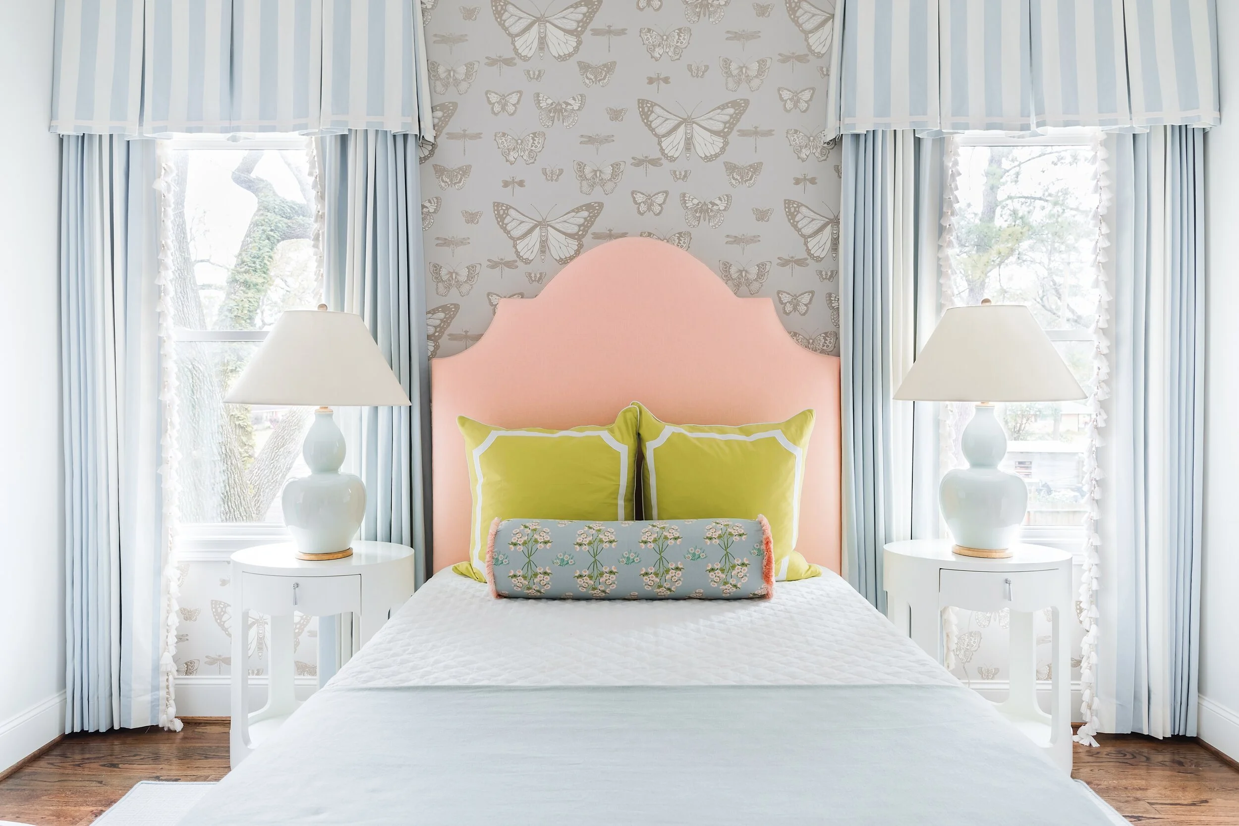 After designing a colorful kid-friendly home for a growing young family in Houston, we were called back in to work on the nursery for their one-on-the-way. Even better? The gender was kept secret from everyone but the design team, making for a one-day installation during a hospital stay and an exciting part-room-part-gender reveal!